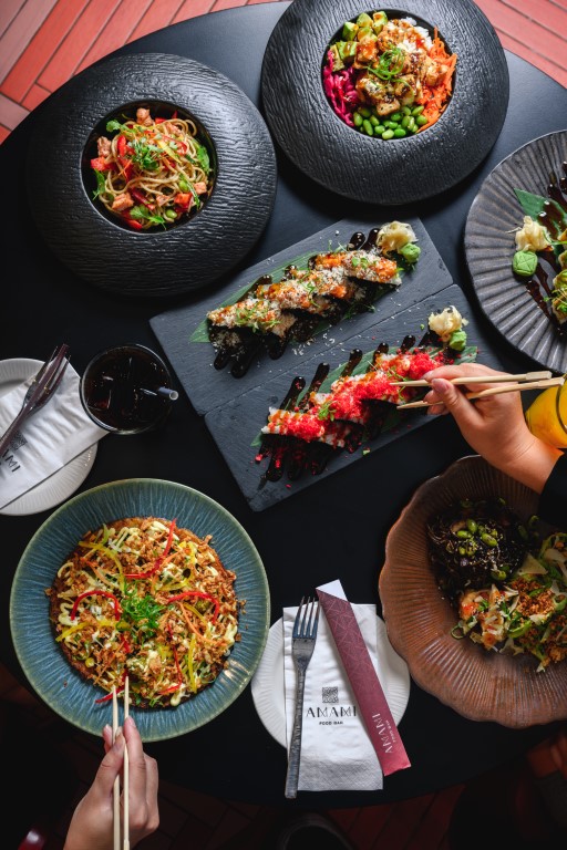 Amami Food Bar, located at the Campus Hub, offers a variety of Asian staples in a fast casual setting. From heartwarming stir fries, delecate sushi rolls, fluffy bao buns & refreshing bubble tea, Amami Food Bar is the perfect stop for a quick bite to eat or the a flavourful option for delivery & take away.